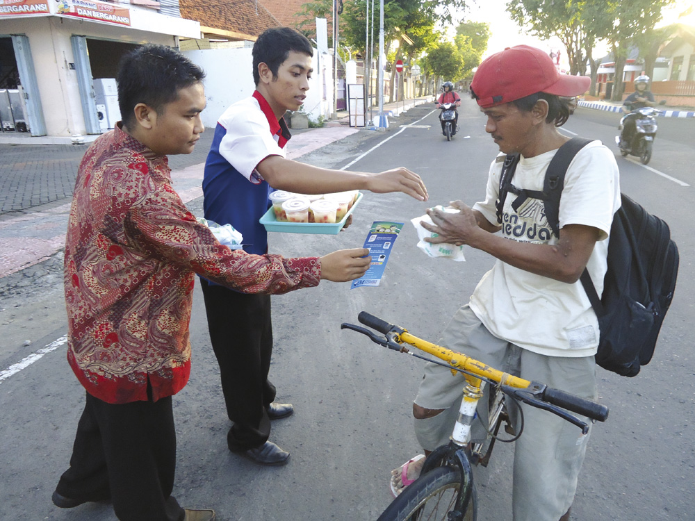 Suasana akrab sore itu meninggalkan kesan tersendiri bagi staf CU Mandiri TP Banyuwangi. Biasanya mereka berkunjung ke rumah anggota. Kali ini, setiap Rabu dan Minggu selama bulan puasa, mereka turun ke jalan demi merekatkan relasi dengan masyarakat melalui program “Bagi-bagi Takjil”. Acara ini diperuntukkan bagi orang-orang yang sedang ngabuburit di sekitar Taman Blambangan, Banyuwangi.