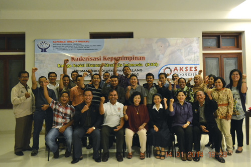 Yel-yel animasi terdengar lantang diserukan peserta kader Asosiasi Kaderisasi Sosio Ekonomi Strategis (AKSES) di Wisma Unio, Malang (12-14/01/14). Pertemuan yang difasilitasi oleh tim AKSES Indonesia ini dihadiri oleh beberapa Credit Union (CU) yang ada di Jawa Timur. Mereka ini antara lain CU Mandiri, Kopdit Kosayu, Kopdit Pancaran Bahagia, serta Puskopdit Jatim-tim.