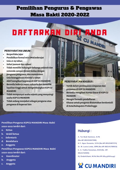 Oleh karena itu, sangatlah mendasar jika tujuan yang dibangun oleh para pencetus dan pendiri CU Mandiri perlu terus dijaga. Yakni, agar nilai-nilai keswadayaan, solidaritas, dan saling percaya tidak luntur. Sebab, roh inilah yang membuat CU Mandiri bisa bertahan hingga sekarang.